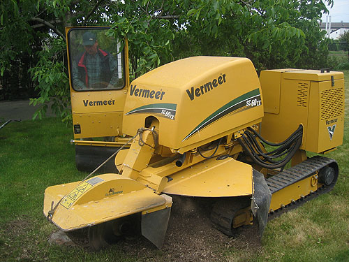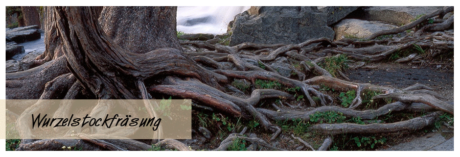 Muss ein Baum gerodet werden, bleibt meist ein störender Wurzelstock. Mit unseren 2 Wurzelstockfräsen, mit einer Mindestdurchfahrtsbreite von 89 cm, erreichen wir die meisten Wurzelstöcke.